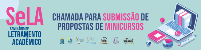 Está aberta até 29 de maio a chamada para submissão de propostas de minicursos da 2ª edição do Seminário de Letramento Acadêmico (SeLA). O evento será realizado nos dias 9, 16, 23 e 30 de novembro pelo projeto de extensão LPT Acadêmico, do Laboratório de Leitura e Produção Textual, do Colégio Técnico de Floriano (CTF/UFPI).