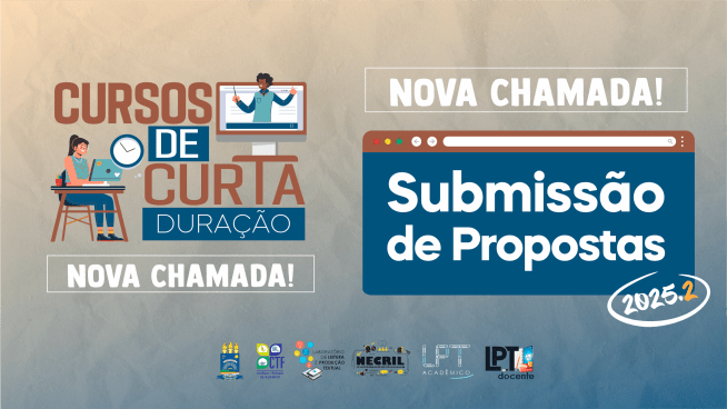 A Coordenação do LPT CONVIDA a comunidade acadêmica [docentes, técnicos e bolsistas do Colégio Técnico de Floriano; estudantes de graduação e pós-graduação da Universidade Federal do Piauí e de outras instituições públicas de ensino superior; membros do Núcleo de Pesquisas em Estudos Críticos e Linguagem [NECriL]; e parceiros do Laboratório de Leitura e Produção Textual – LPT/CNPq] a SUBMETEREM PROPOSTAS de cursos de curta duração a serem ministrados no segundo semestre de 2025, de forma gratuita e on-line, para os projetos LPT Acadêmico [escrita acadêmica/letramentos acadêmicos] e/ou LPT Docente [formação docente de Língua Portuguesa].