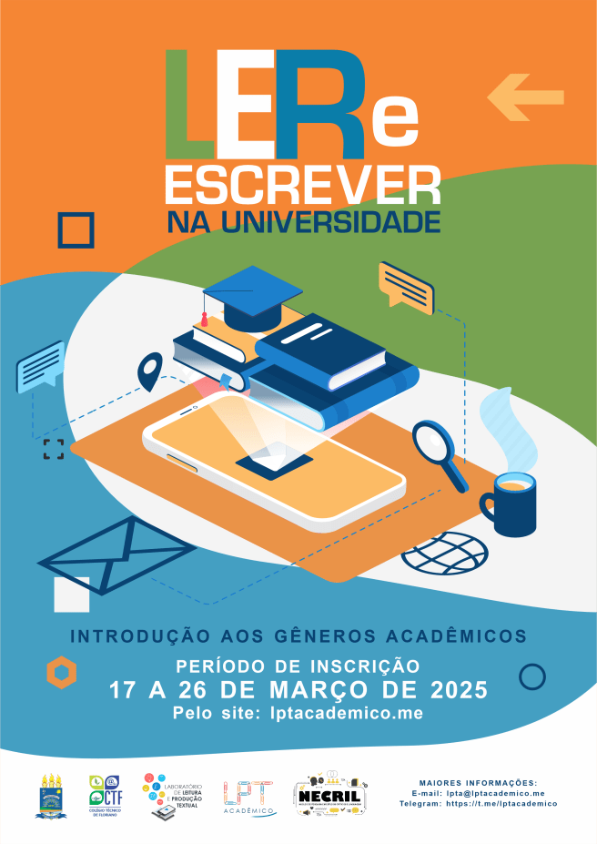 A Coordenação do Laboratório de Leitura e Produção Textual [LPT/CNPq] divulga as informações do processo seletivo de bolsistas e voluntárias/os para o projeto de extensão LPT Acadêmico, em razão do Edital nº 9/2024 – PIEX/EBTT/UFPI.