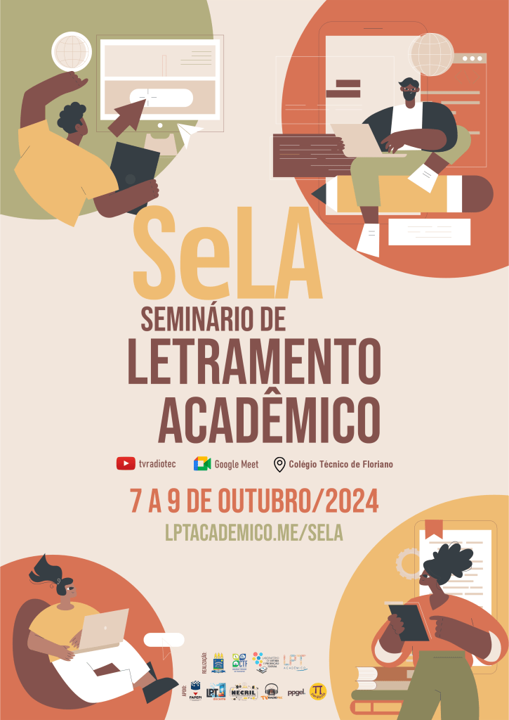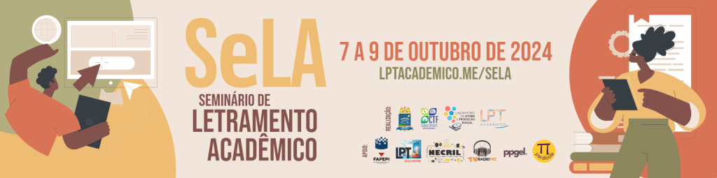 O projeto de extensão LPT Acadêmico do Laboratório de Leitura e Produção Textual [LPT/CNPq] do Colégio Técnico de Floriano [CTF/UFPI] tem a satisfação de anunciar a realização da terceira edição do Seminário de Letramento Acadêmico [SeLA], a ser realizado de forma híbrida, de 7 a 9 de outubro de 2024.